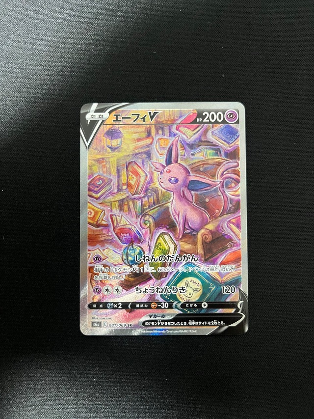 【商品説明】 ポケモンカードゲーム 拡張パック「イーブイヒーローズ」に収録されている 「エーフィV」SRです。 幻想的でアート性の高いイラストが特徴で、 イーブイ進化系の中でも特に人気のある1枚となっております。 コレクション用としても非常におすすめです。 【状態A-】 ・開封後、すぐにスリーブへ入れて保管しております。 ・目立つ大きな傷や折れは見受けられませんが、 初期傷や微細な白かけ等がある場合がございます。 ・プレイ用・コレクション用としてご理解いただける方のみご購入ください。 【発送方法】 ・スリーブ+硬質ローダーに入れ、 折れ・水濡れ防止対策を行い丁寧に梱包して発送いたします。 【注意事項】 ・すり替え防止のため、 ご購入後の返品・返金はお受けできません。 ・即購入OKです。